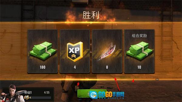 战斗获胜后,可获得金币、经验、武器等奖励,点击确定即可领取,积累这些资源能提升自身战力。
