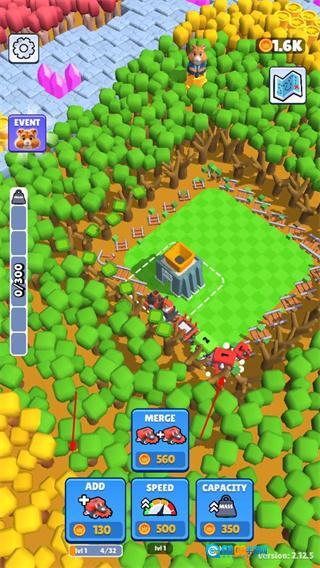 伐木车穿梭于树林之间,一边砍伐树木、收集资源,一边不断拓展伐木区域,以此丰富资源的获取途径。