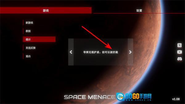 在提示界面中,需了解导弹无视护盾但可被拦截这一游戏机制,以此为策略布局做好准备。