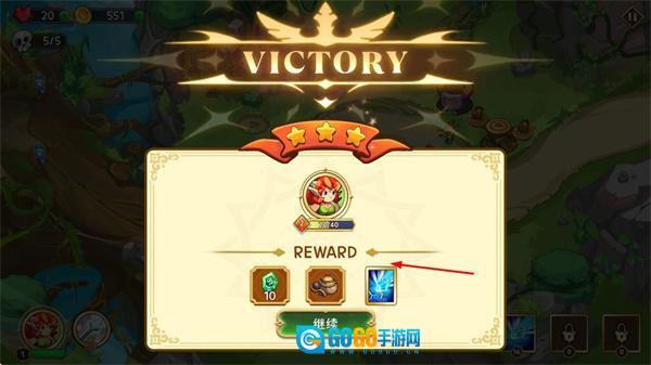 成功抵挡所有敌人的攻击后,就能赢得胜利并获取奖励,随后可以点击继续进入下一关。