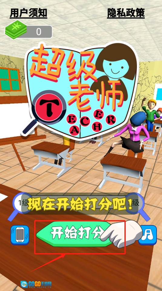 点击下方那个绿色的“开始打分”按钮,就可以进入游戏教室,开启答题环节啦。