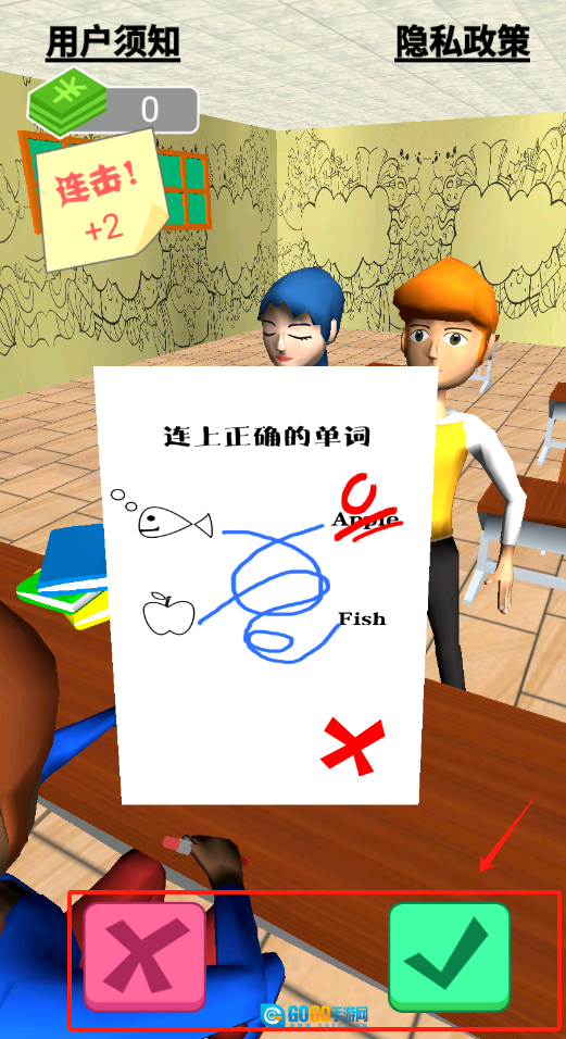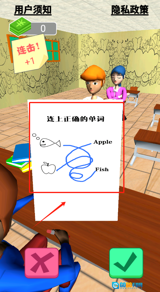 要是连线错了,就会出现红色叉号提醒,快重新连,连对就能得分啦。