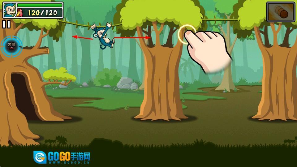 控制猴子在森林场景里移动,能借助藤蔓之类的在树木之间穿梭,去探索各个不同的区域。