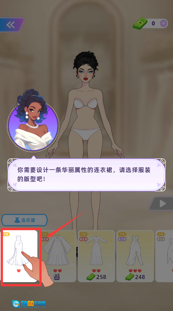先把服装的版型确定,点击红色框框的衣服。