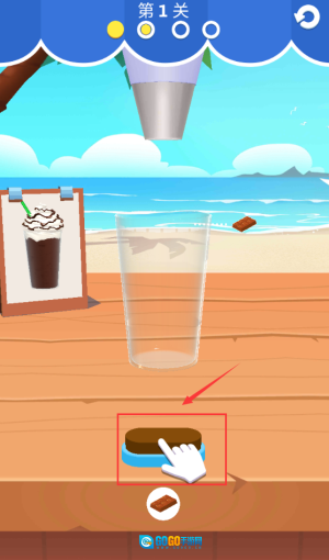 点击红框棕色方块,放入容器开始制作饮品。