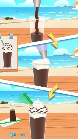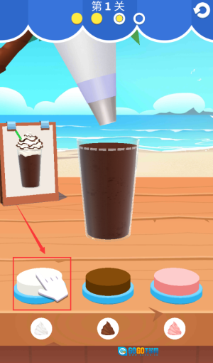 点击白色奶油按钮,为饮品添加顶部装饰。