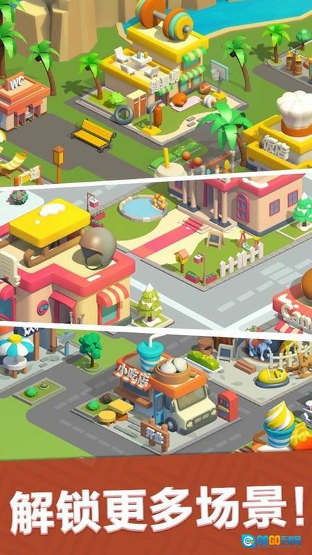 场景解锁机制:小镇发展过程中会逐步开放沙滩、山地、海湾等不同场景,每个场景都拥有独特的资源与建筑,为玩家提供源源不断的探索动力。