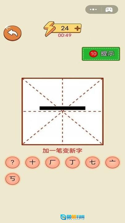 游戏区域会出现基础汉字“一”,玩家用手指滑动添加笔画,就能把它变成另一个完整的汉字。