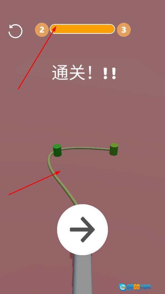 在进入关卡后,需通过操作让管道产生变形并延伸,以此引导顶端物件朝着目标方向移动,同时要留意通关进度条的变化情况,就像图中的第一关那样顺利完成关卡。