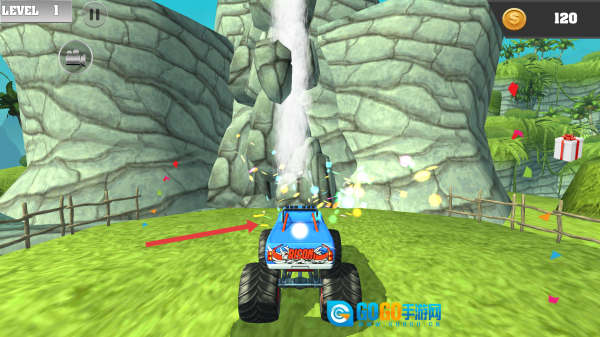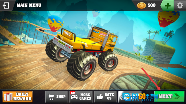 在主菜单界面点击NEXT选项,选择怪兽卡车车型,随后进入Level1的丛林赛道。