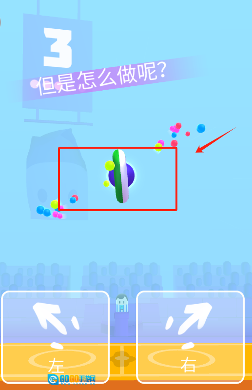 面对3,不过具体该如何操作呢?提示是:通过左右调节按钮的位置,使彩色物体能够接住掉落下来的小球。