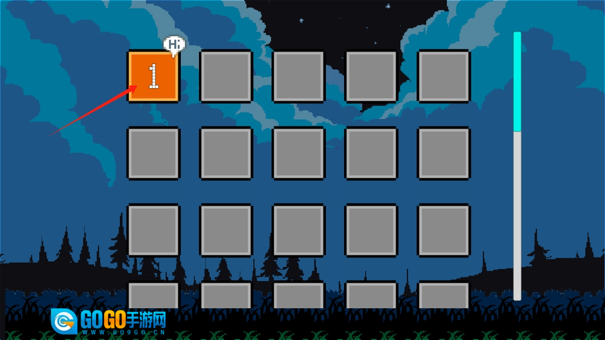 在关卡选择界面,点击橙色的方块1,就能进入关卡1,开启小猫寻找粮食的挑战。