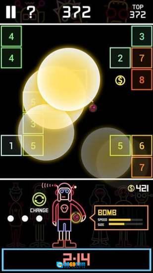 进入游戏后先观察方块的分布情况(比如1、2、3这样的排列),然后拖动发球去撞击方块来积累分数,同时要留意底部显示的【29:54】倒计时。