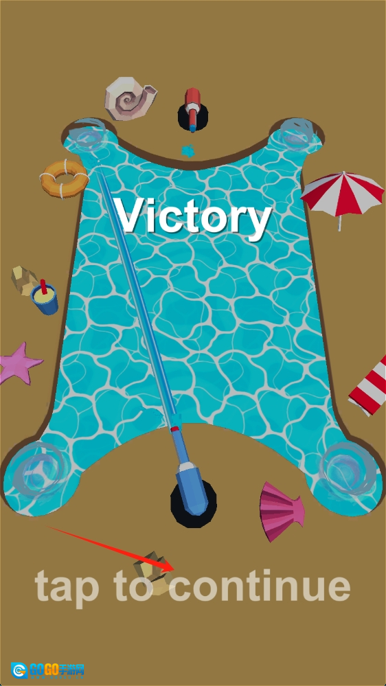 在取得胜利之后,点击“tap-to-continue”按钮,就能进入下一个关卡,继续这场泳池游戏的冒险之旅。