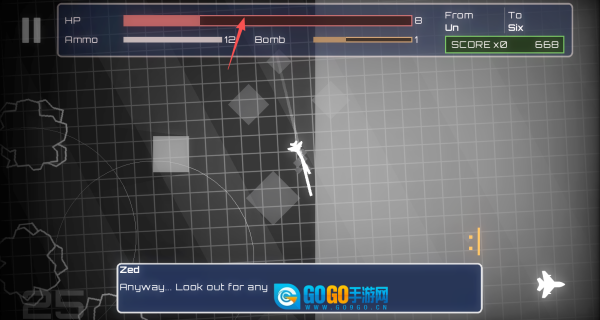 飞船每次撞击障碍物都会损失血量,剩余生命值可以通过屏幕上方的血条实时查看。