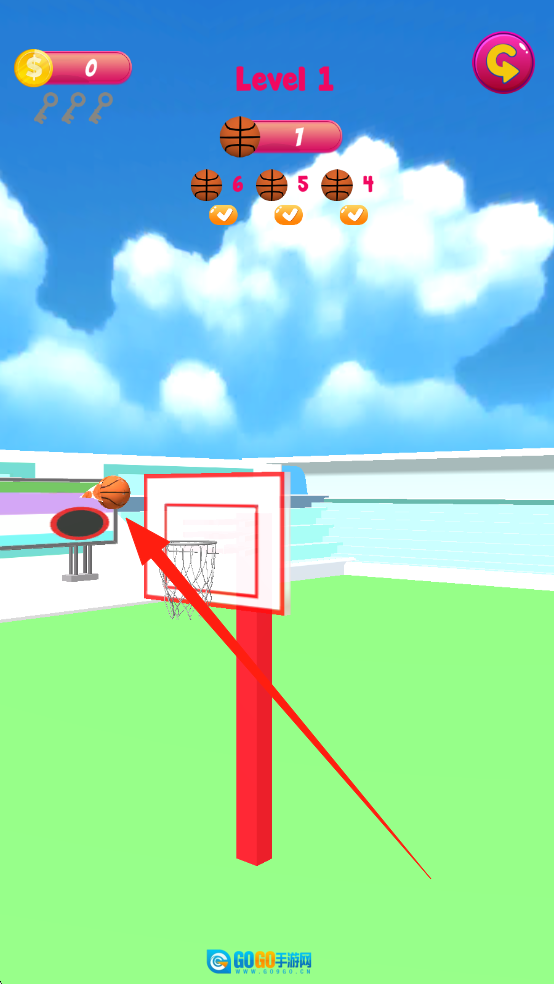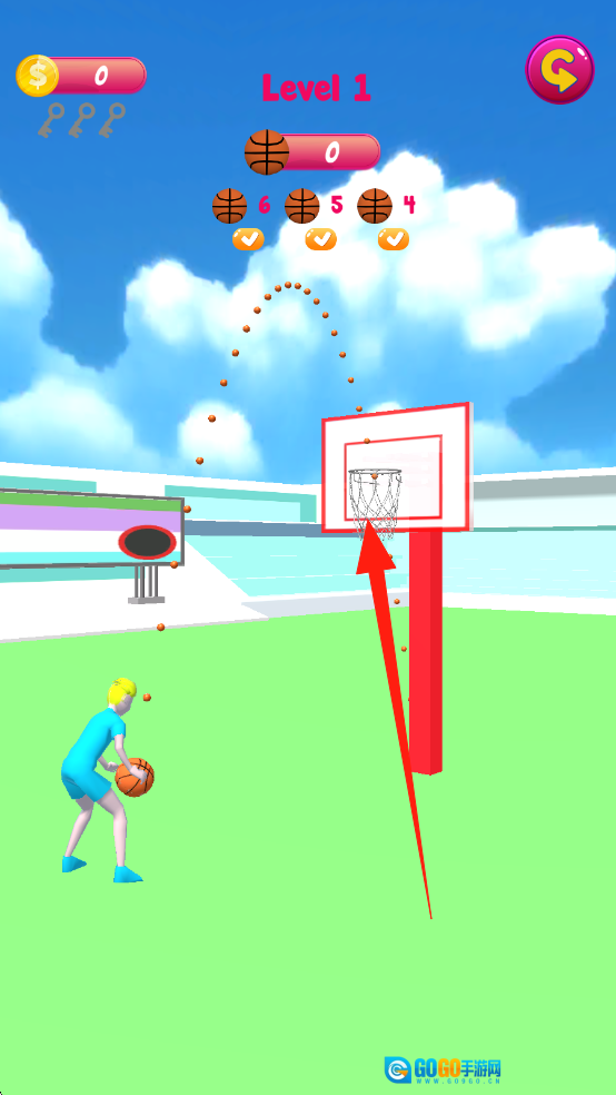 观察篮筐所处方位以及防守态势,优先挑选最理想的角度,精准把控投篮的力度与时机,高效通过关卡以获得三星评价。