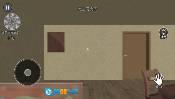 接下来玩家就能自由行动了。留意画面左上角的披萨收集进度,需要探索各个房间来寻找披萨碎片。