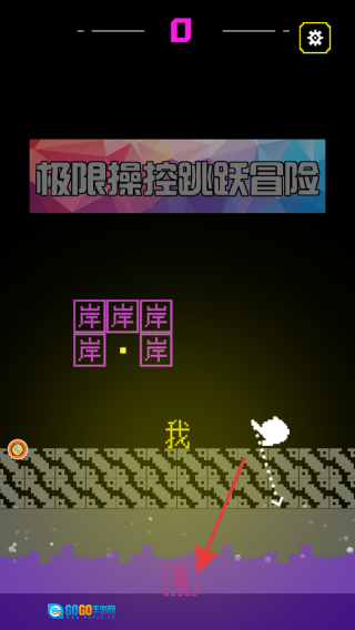 在游戏场景里,依据界面给出的提示,你可以通过点击或者拖动屏幕来操控白色角色进行跳跃,让它从现在所在的平台跳到目标平台上,这样就算完成一次跳跃动作了。