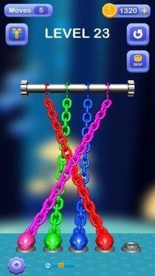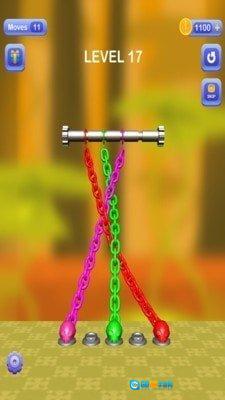 视觉呈现简洁直观:画面主打简洁风格,绳索与铁链的色彩、形态区分明确,缠绕结构清晰可见,使玩家能集中精力分析逻辑关系,防止视觉干扰打乱解谜思路。