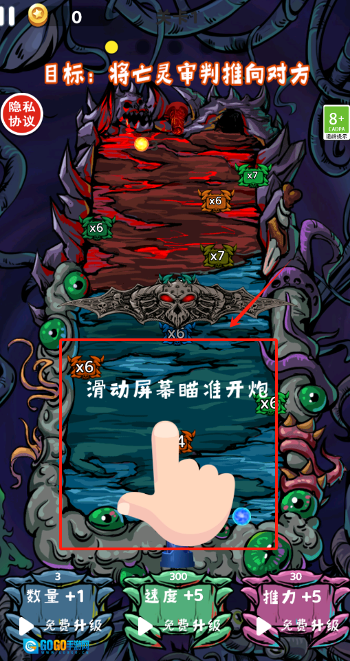2 、看到通道里的亡灵审判和滑动提示后,按住屏幕左右滑动就能瞄准并发射攻击敌人啦。