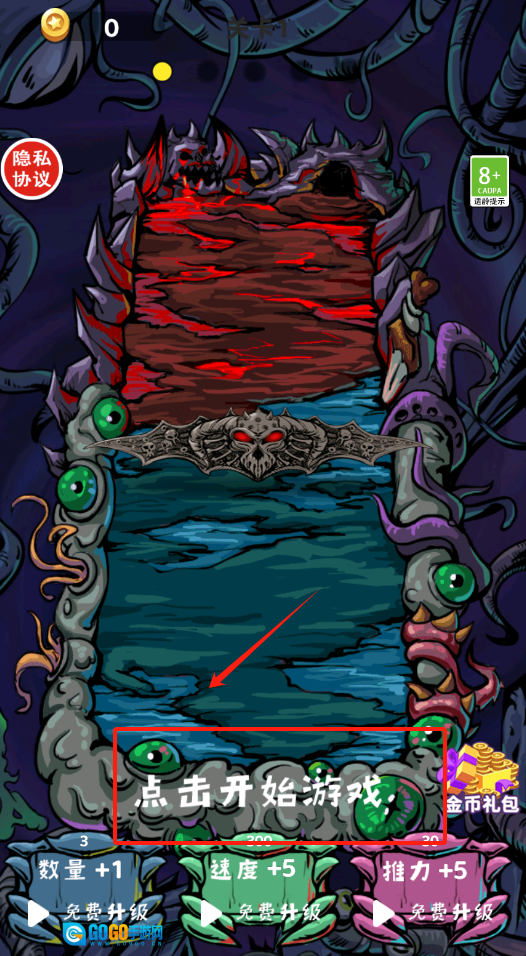1 、看到暗黑界面中间的红色岩浆区域,旁边就有“开始游戏”按钮,点击这个按钮就能进入游戏开启对战啦。