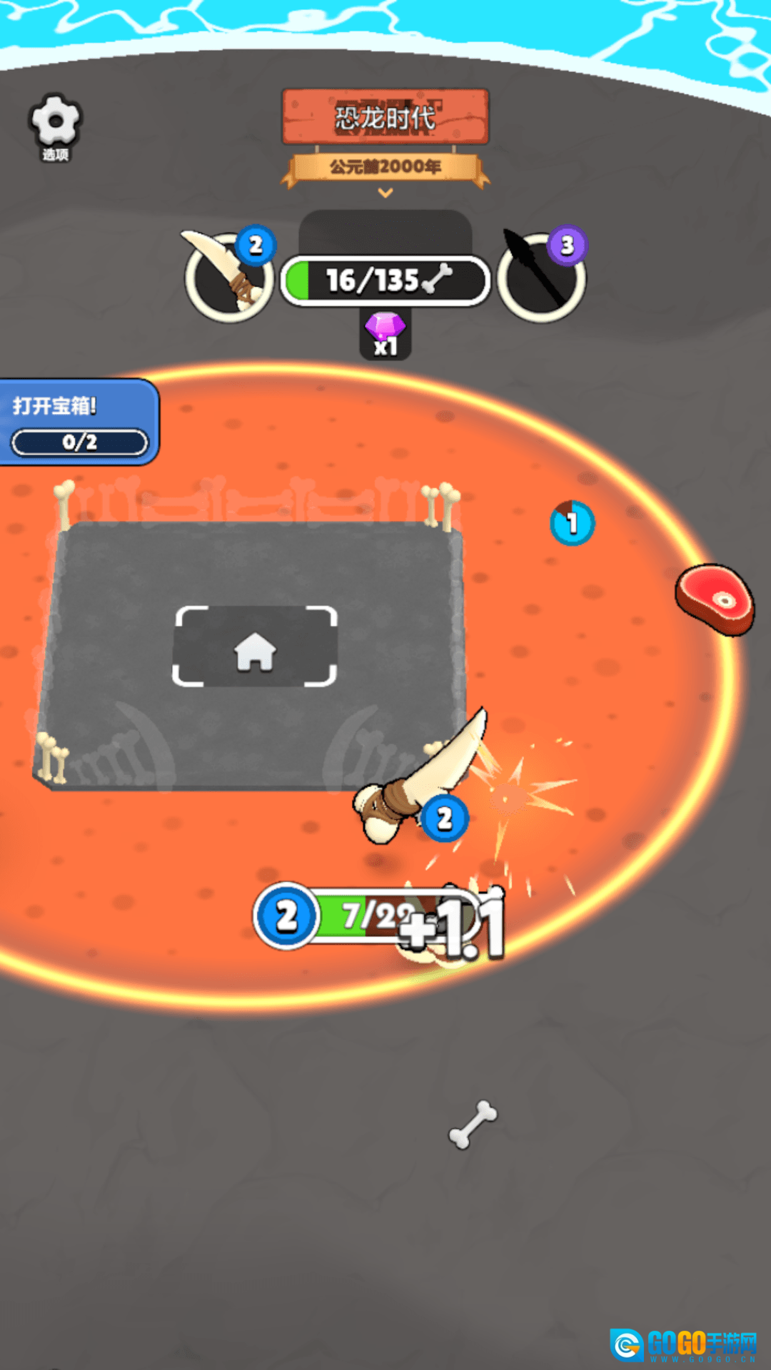 你可以直接点击左侧的移动按钮,以此来操控“骨头”角色进行移动,同时收集关卡里所需要的各类资源。