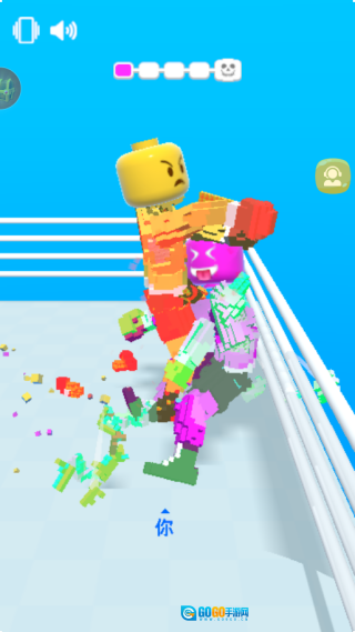 3、游戏采用经典的像素画风,却承载着极具创意的核心玩法。像素块崩散与吸收的视觉效果,也与像素主题十分契合。进入游戏后,当角色靠近对手时,会触发自动攻击机制,也可以手动点击攻击键来出拳。关键在于把握好节奏,抓住对手攻击的空隙展开反击。