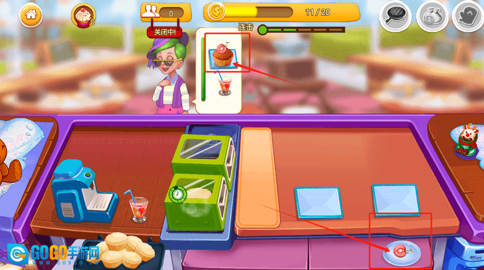 用烤箱烤制纸杯蛋糕,通过饮品机制作饮料,以此来完成订单任务,制作过程中要留意顾客的具体需求。