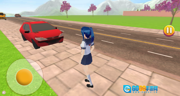 4、通过左侧方向控制键调整角色位置,快速向人行道内侧移动,避免与车辆发生碰撞,确保角色安全行进。