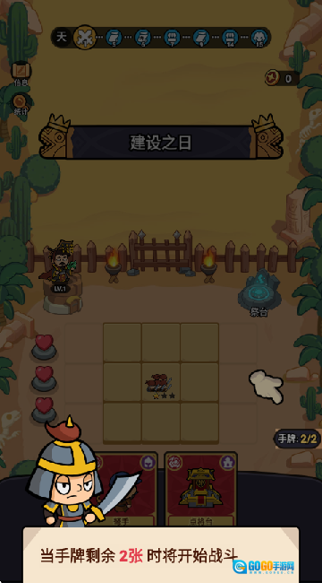 当手里的卡牌剩余两张时就可以点击下方的战斗。