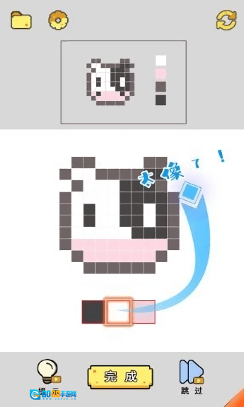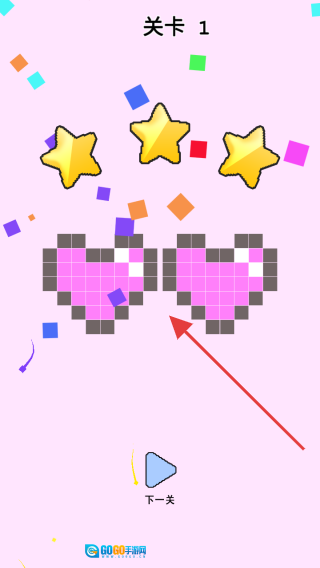在【关卡1】成功获得三星评价通关后,点击【下一关】按钮,就能继续挑战新的像素涂色关卡,解锁更多图案。