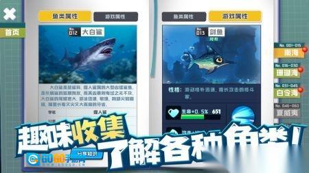 海洋里生物种类繁多,小到小巧的珊瑚鱼,大到巨大的鲸鱼,还有牙齿锋利的鲨鱼和身姿敏捷的箭鱼,每一次捕食都能让人体验到明显的成长喜悦。