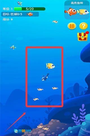 游戏内如图,我们需通过滑动屏幕来控制小鱼移动。