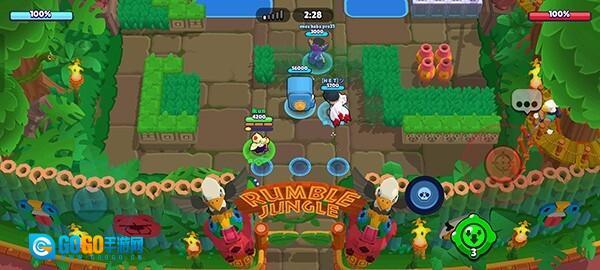 3V3战斗,收集地图中心的宝石矿井里冒出的宝石,或是干掉对手并抢走他们的宝石,集齐10颗宝石并坚持到计时结束后即可赢得对战。