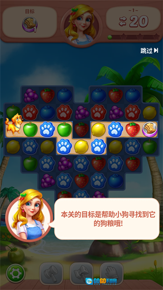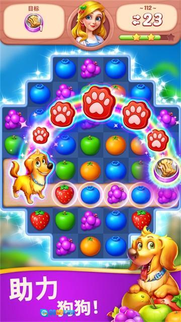 在游戏过程中,你可以喂养自己的宠物狗,只需消除水果就能为它获取喜爱的食物。