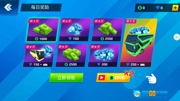 每日进行签到操作,就能获取丰厚的奖励,像游戏金币、钻石这类常规福利都能拿到,甚至还有可能得到全新的车辆。