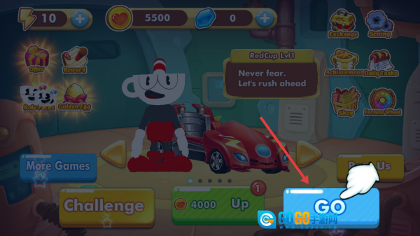 选择RedCup赛车,点击【GO】按钮,消耗5500金币,即可进入赛道。