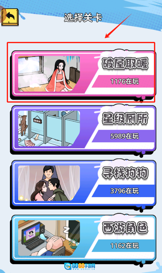 在关卡选择界面,点击任意一个彩色的关卡框,从中挑选出你喜欢的挑战模式,这样就能开启对应场景下的取暖解谜任务了。