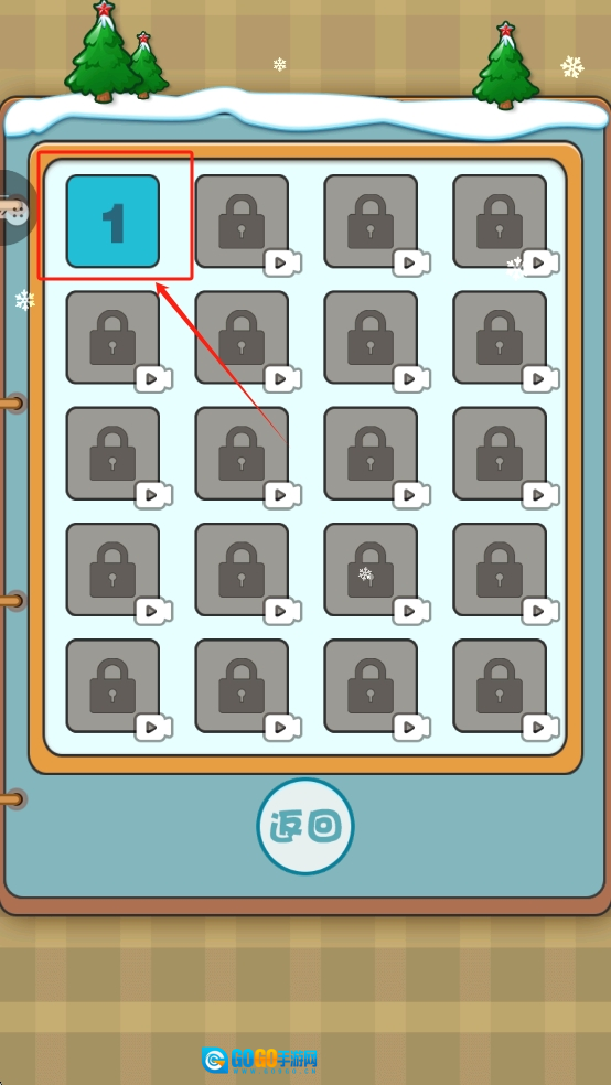 选择关卡:点击数字“1”开启第一关,熟悉基础操作与目标。
