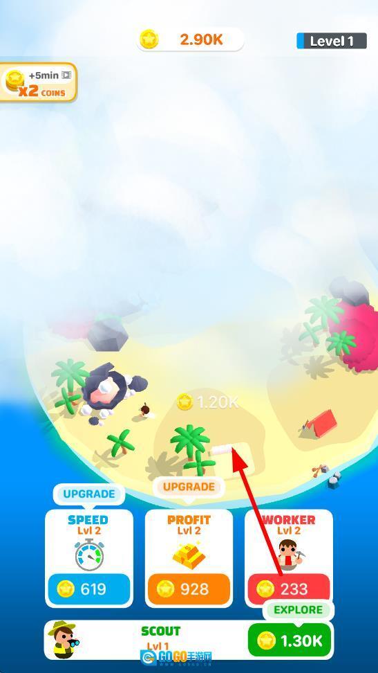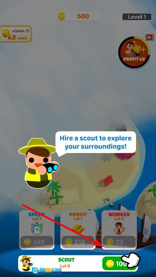 刚进入对局时,先派基础探险家去探索岛屿的初级区域,收集水果和木材来维持生存,这样就能解锁“简易背包”,从而扩大携带物品的数量。