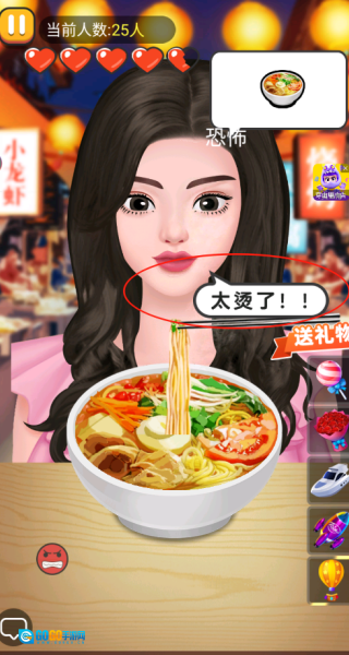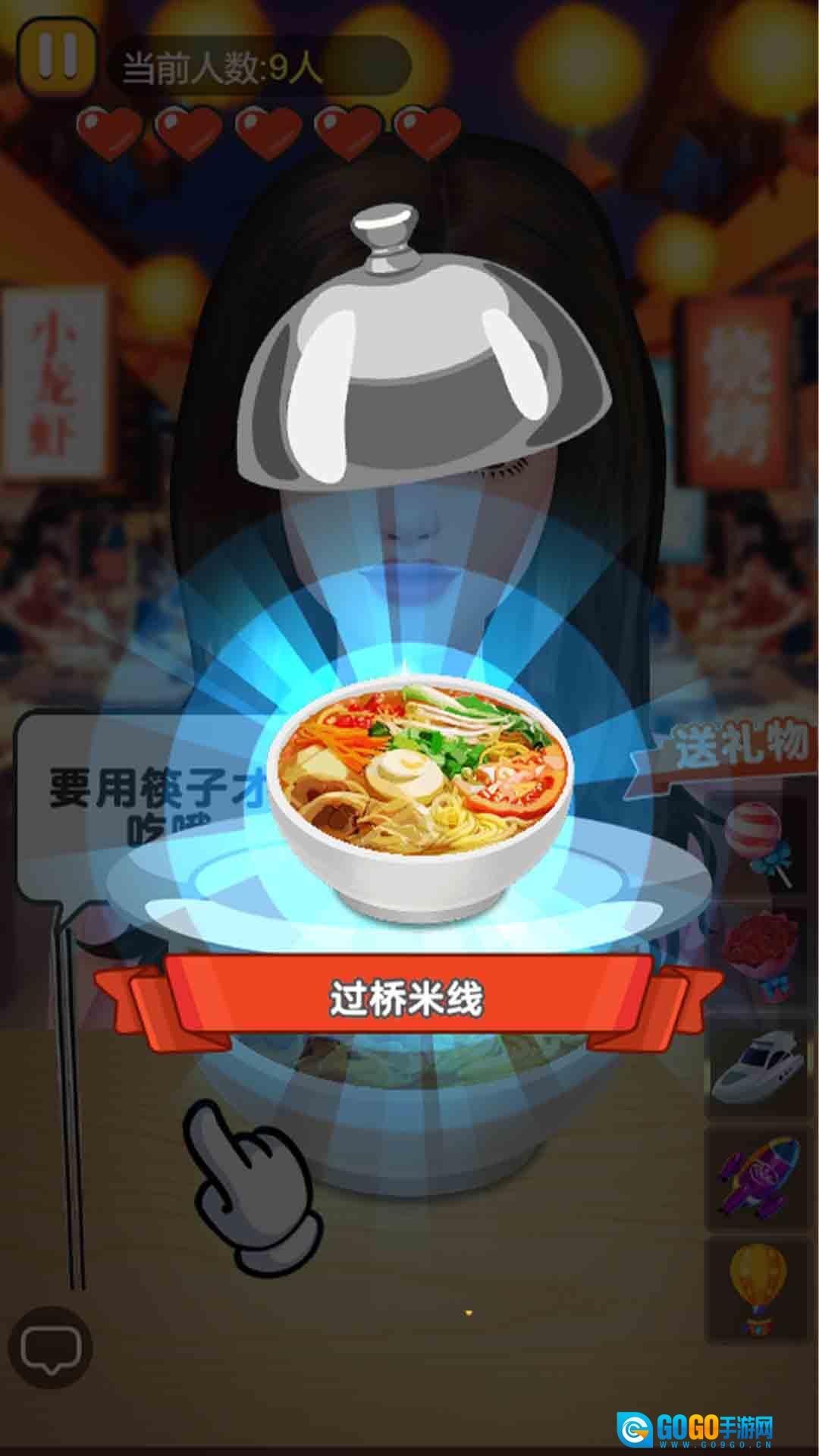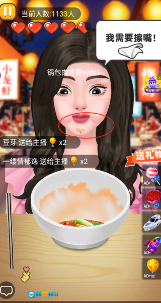 进入游戏后,点击并拖动筷子,夹取碗里的食物来完成进食动作,开启你的首场吃播直播,以此熟悉基础的互动逻辑。