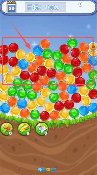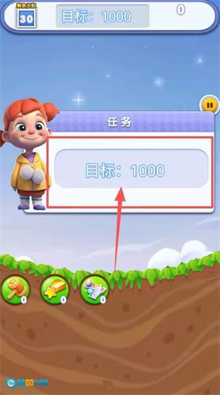当界面上出现“剩余30步目标1000页”的任务提示时,需把消除重点放在红发小孩角色周围的彩色泡泡上,必要时点击底部的锤子道具能精准清除障碍物。