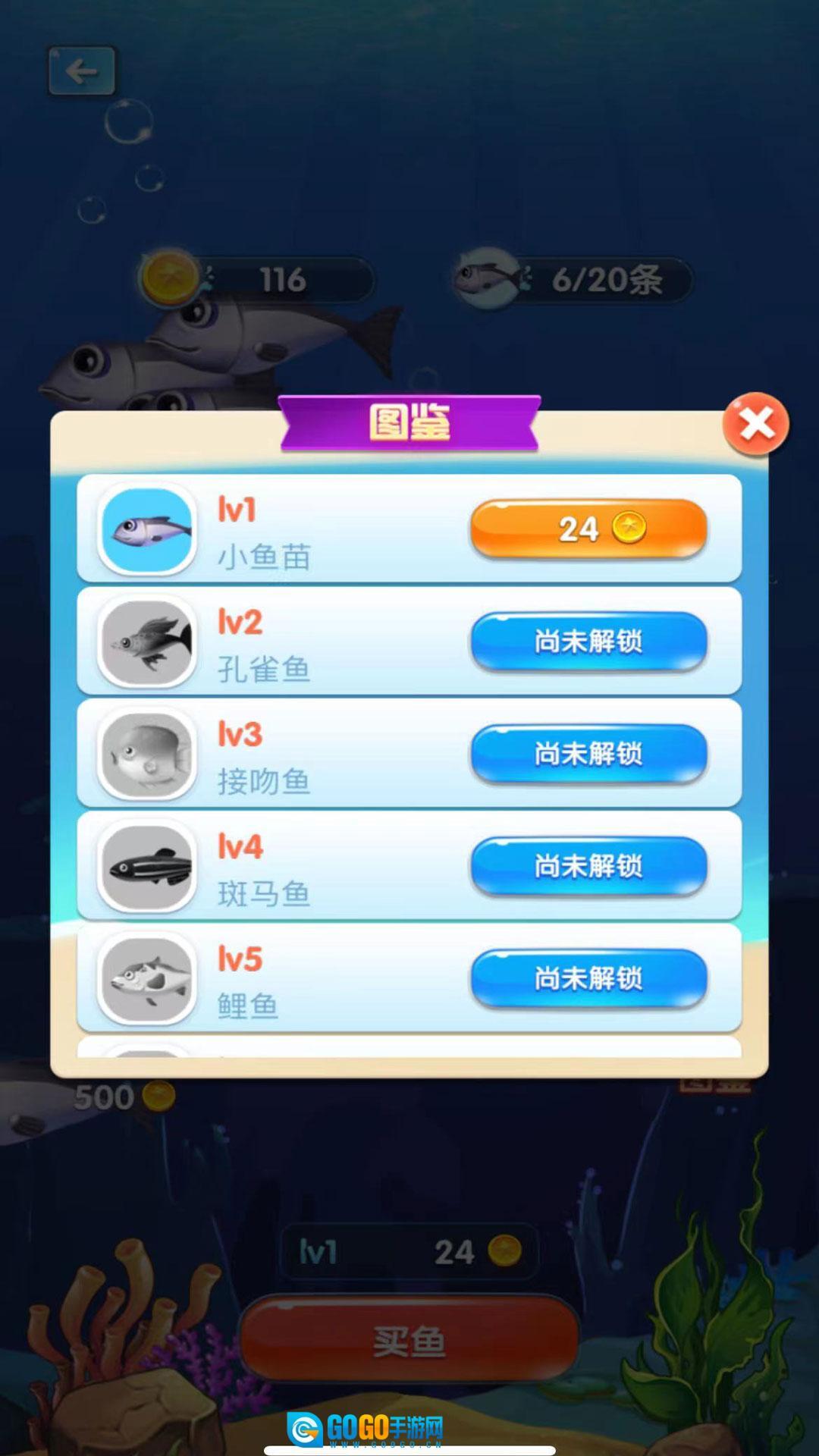 相同等级的鱼类能够合成,玩家得及时给鱼池升级,这样鱼池里就能容纳更多小鱼了。
