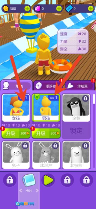 冲过终点线的刹那,金币风暴与卡券海啸即刻爆发,你可以用这些战利品解锁鲨鱼装甲、闪电泳镜等超强装备,也能在商店里用钻石兑换黄金涡轮,让冲刺速度一路飙升