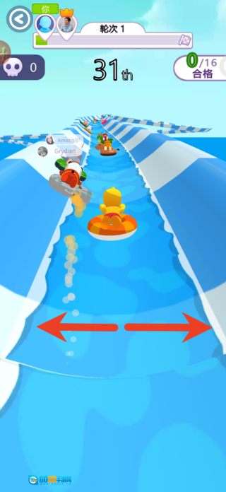 当右上角跳出“仅存8个生还名额”的提示时,得全神贯注地躲开暗礁、漩涡,还要避免和对手相撞,借助加速带和技能特效稳住领先位置,任何一点小失误都可能造成