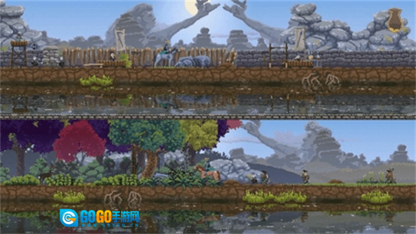 王国两位君主是一款Steam移植的良心策略游戏,游戏采用了极简的像素风格,但是画面看起来依旧非常精美,玩家将化身成为过往,在游戏中征召忠诚的子民,建造你的王国。除了建造你的王国你还需要保护它,不要让贪婪生物掠夺你的财富和王位。
