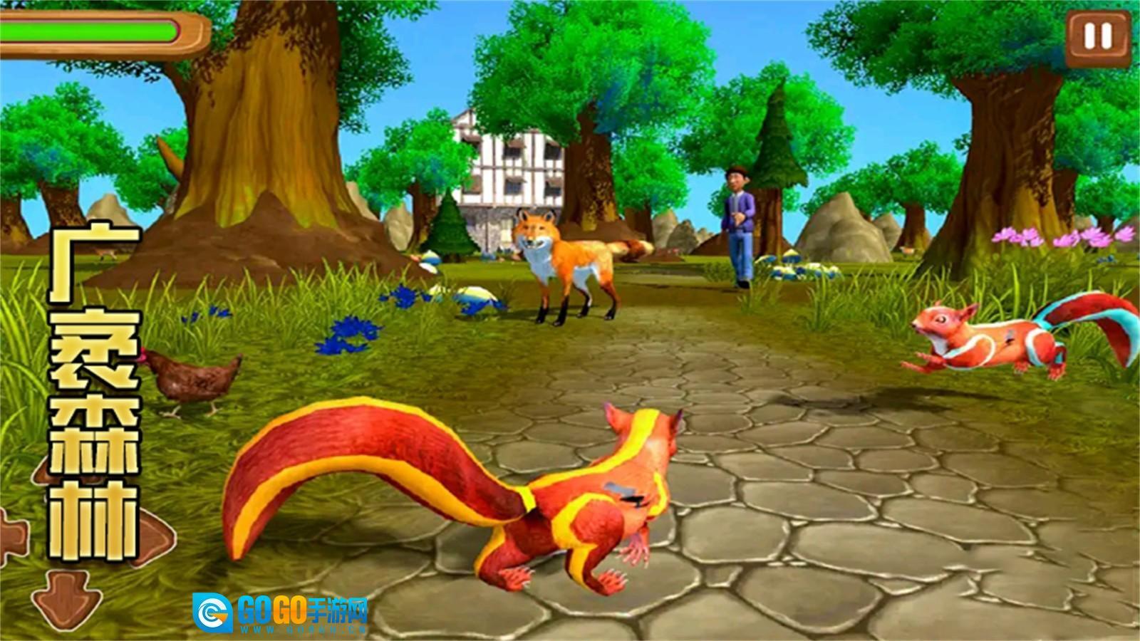 玩家可借助虚拟摇杆和按键,操控松鼠完成跑、跳、攀爬等基础动作。