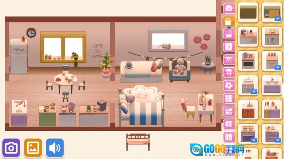 点击右侧的按钮即可打开装饰品库,从中挑选各式各样的小装饰来装点空间,以此增强整体设计的精致感和氛围感。