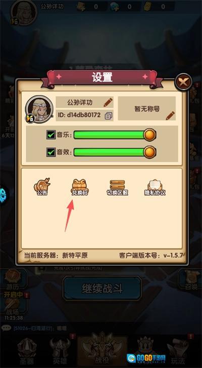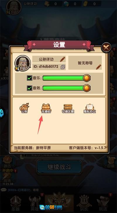 在设置界面中可以看到兑换码