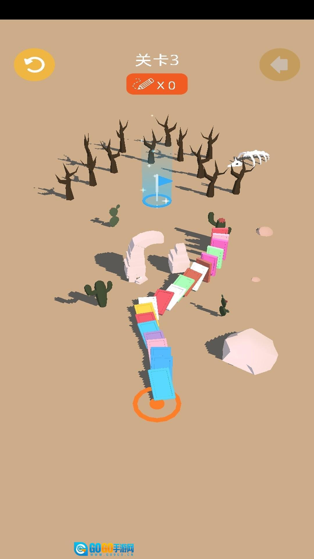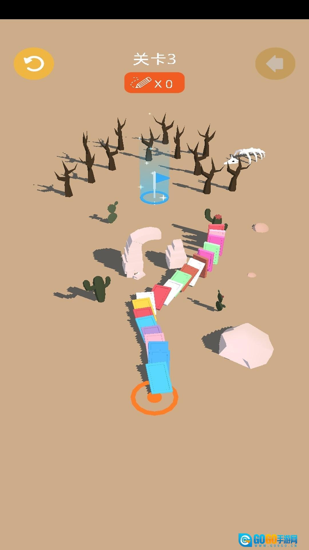 面对复杂关卡时,建议先规划好路径,借助虚线来模拟骨牌的行进方向,同时避开仙人掌、巨石这类障碍物;要是碰到缺口,就用骨牌把它填补起来,以此保证连锁反应能够持续进行,不会出现断层。